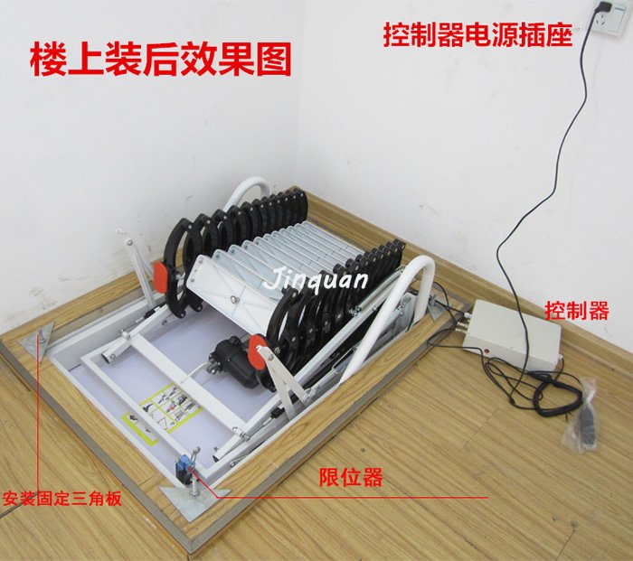 所有的鏈環都是采用扣索的形式,這樣能夠保證在多次使用中不會出現松動。在你不用時,你可以將其推至頂層,然后下面的木板就會自動合上,堵住樓梯口,讓人感覺不到那兒有一個樓梯洞口,所以閣樓伸縮樓梯也叫隱形伸縮樓梯。